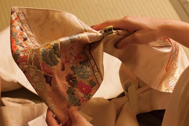 Puisque l'obi est créé sans le couper, il peut être réutilisé comme kimono obi après l'avoir déballé, ou il peut être transformé en d'autres œuvres.